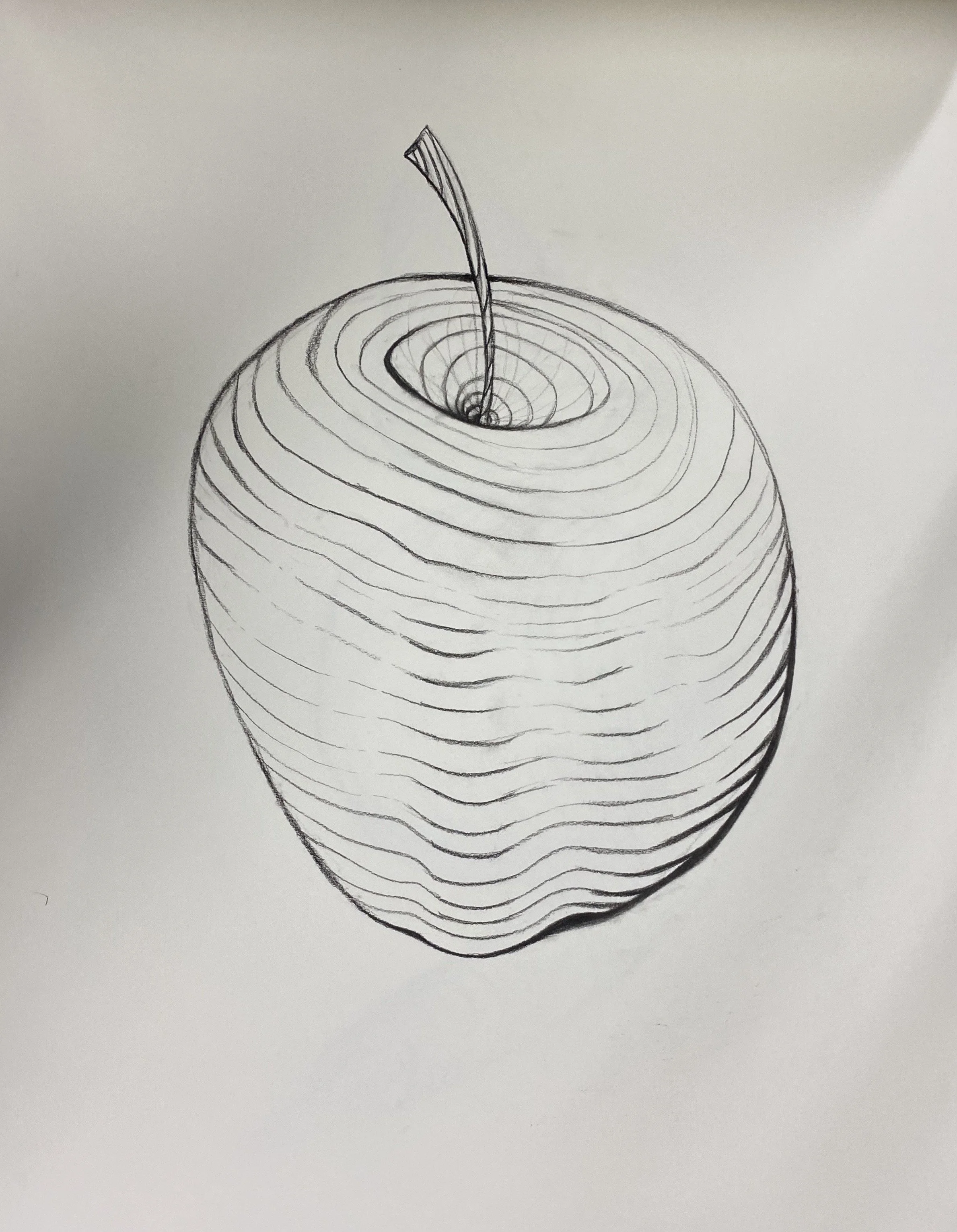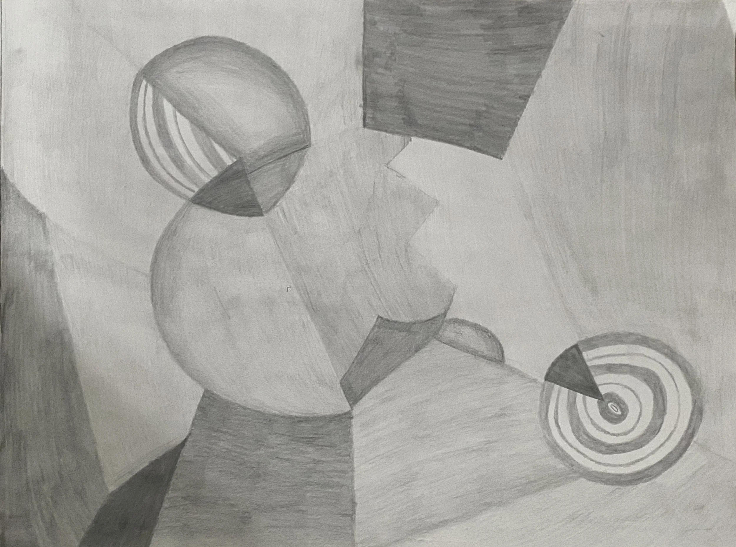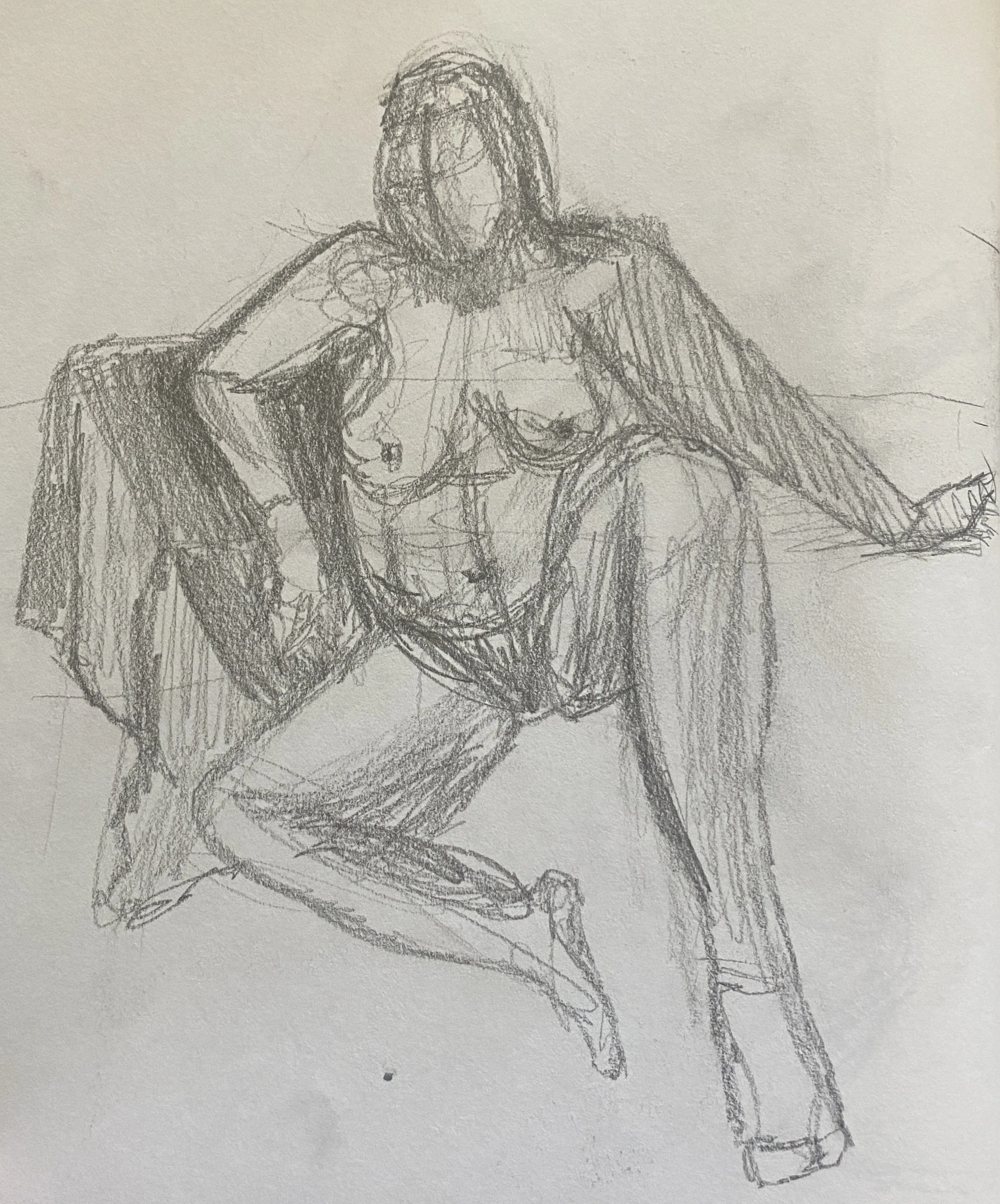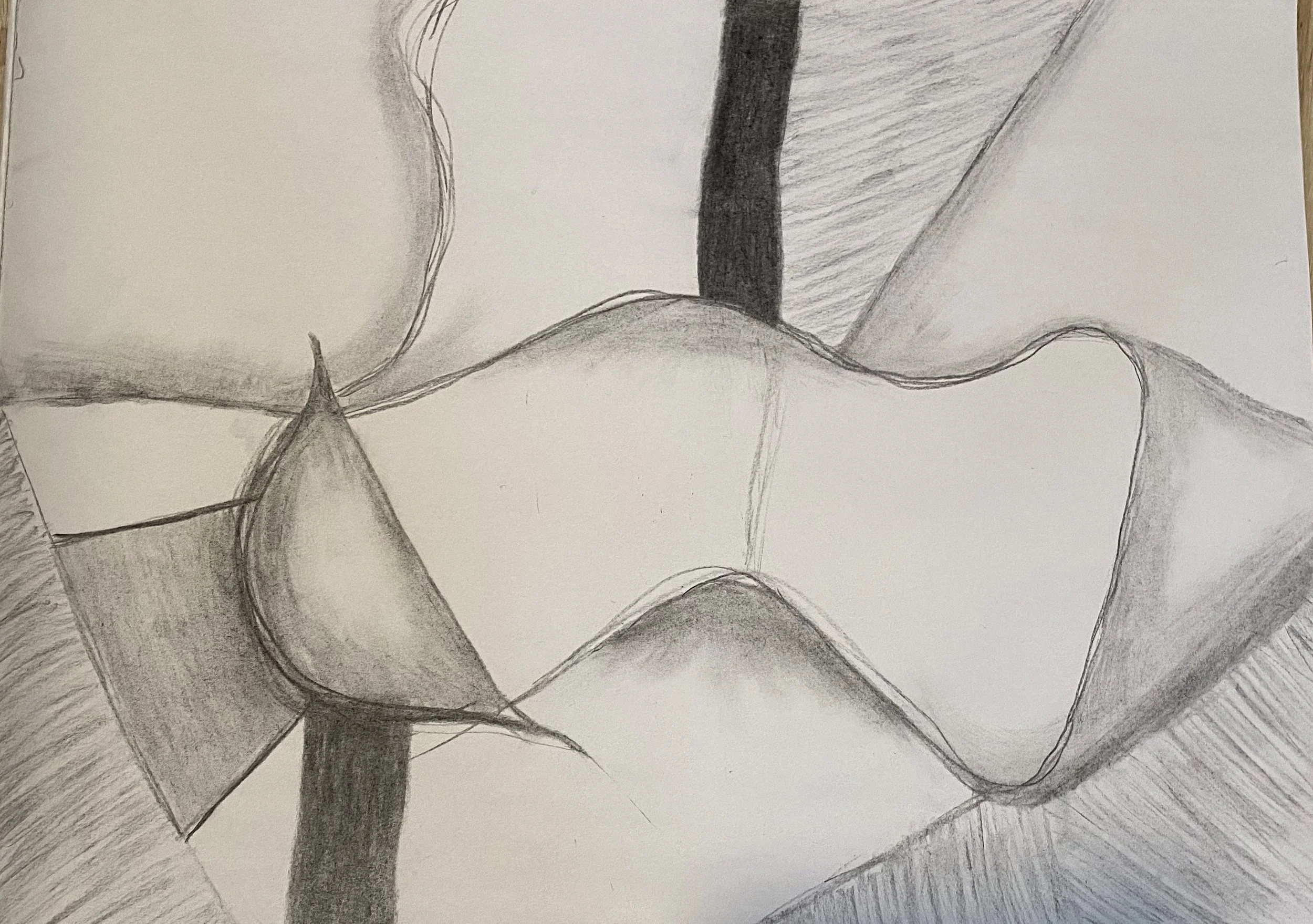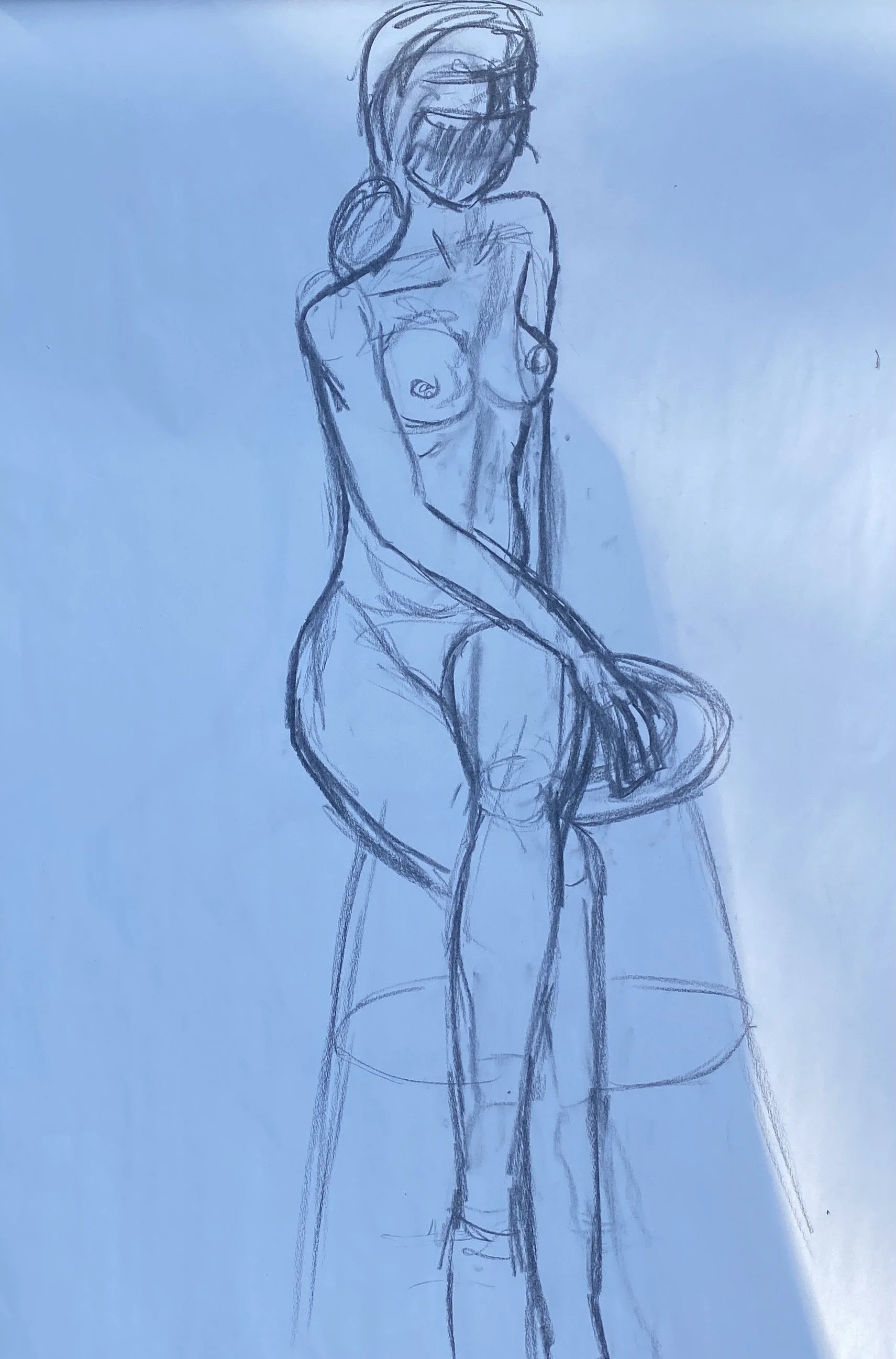 "Quarantine Self-Portrait." 2021. White charcoal on black paper.