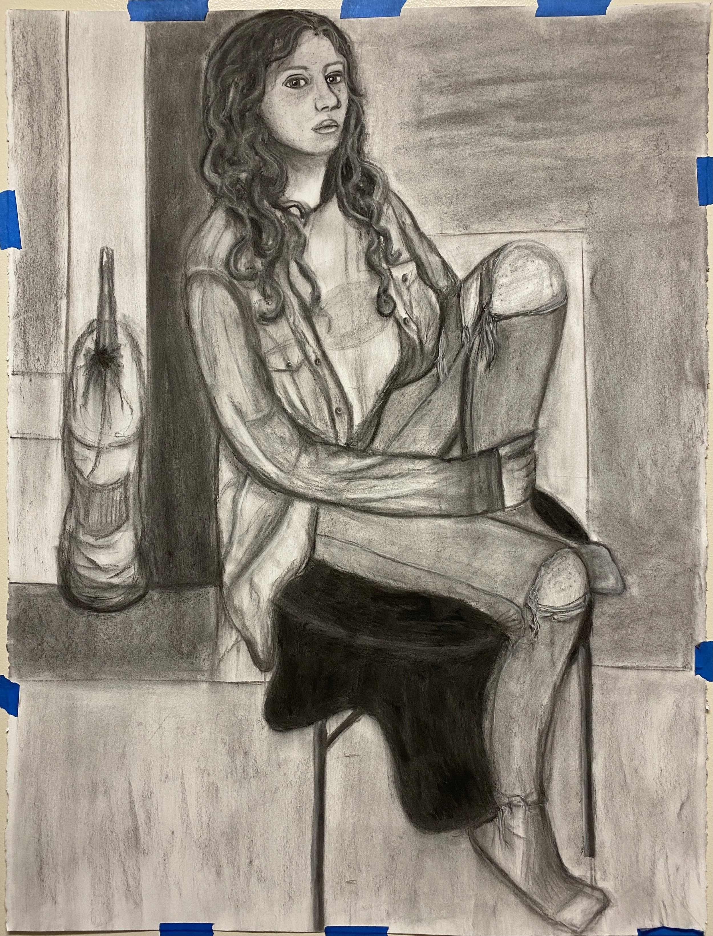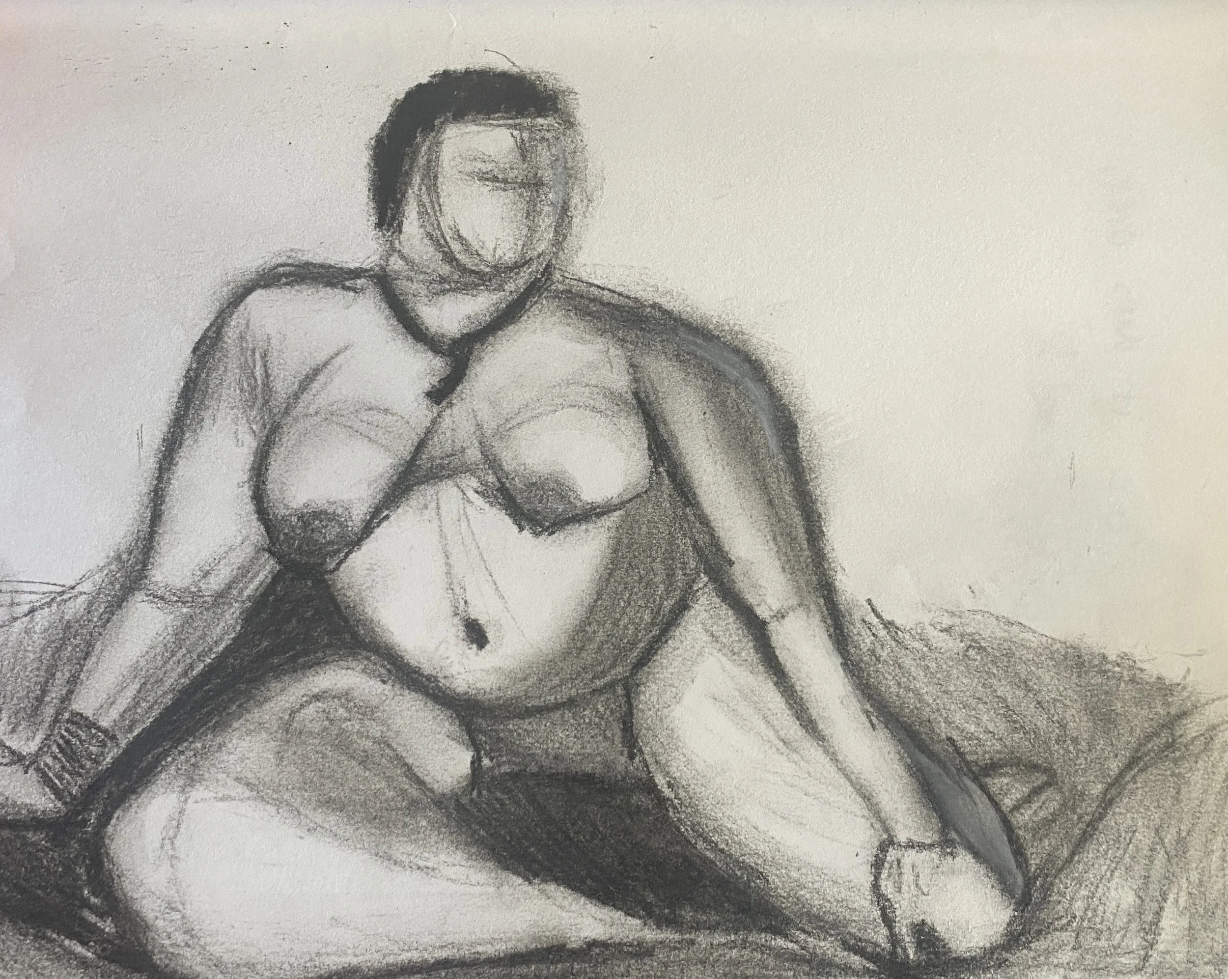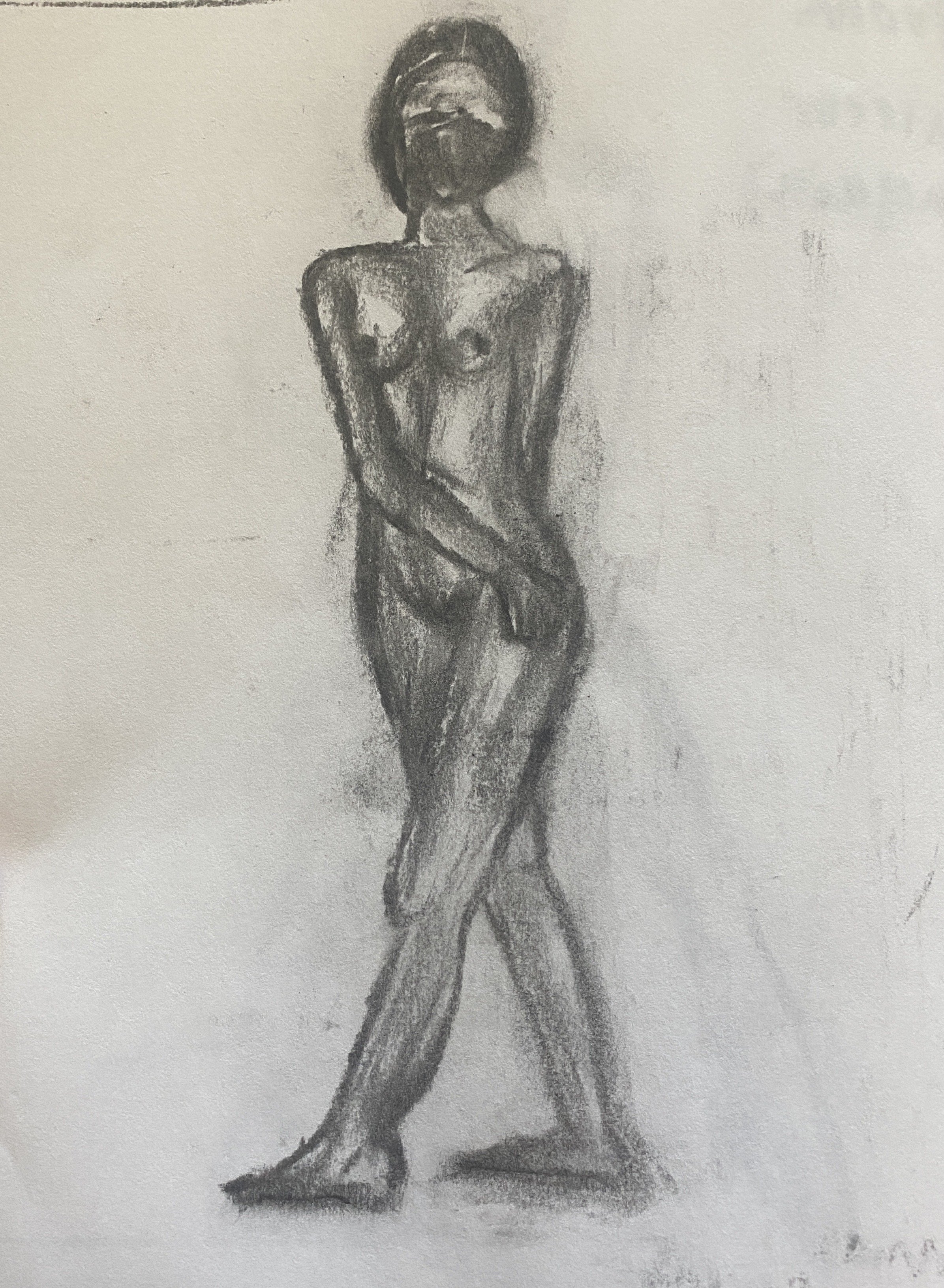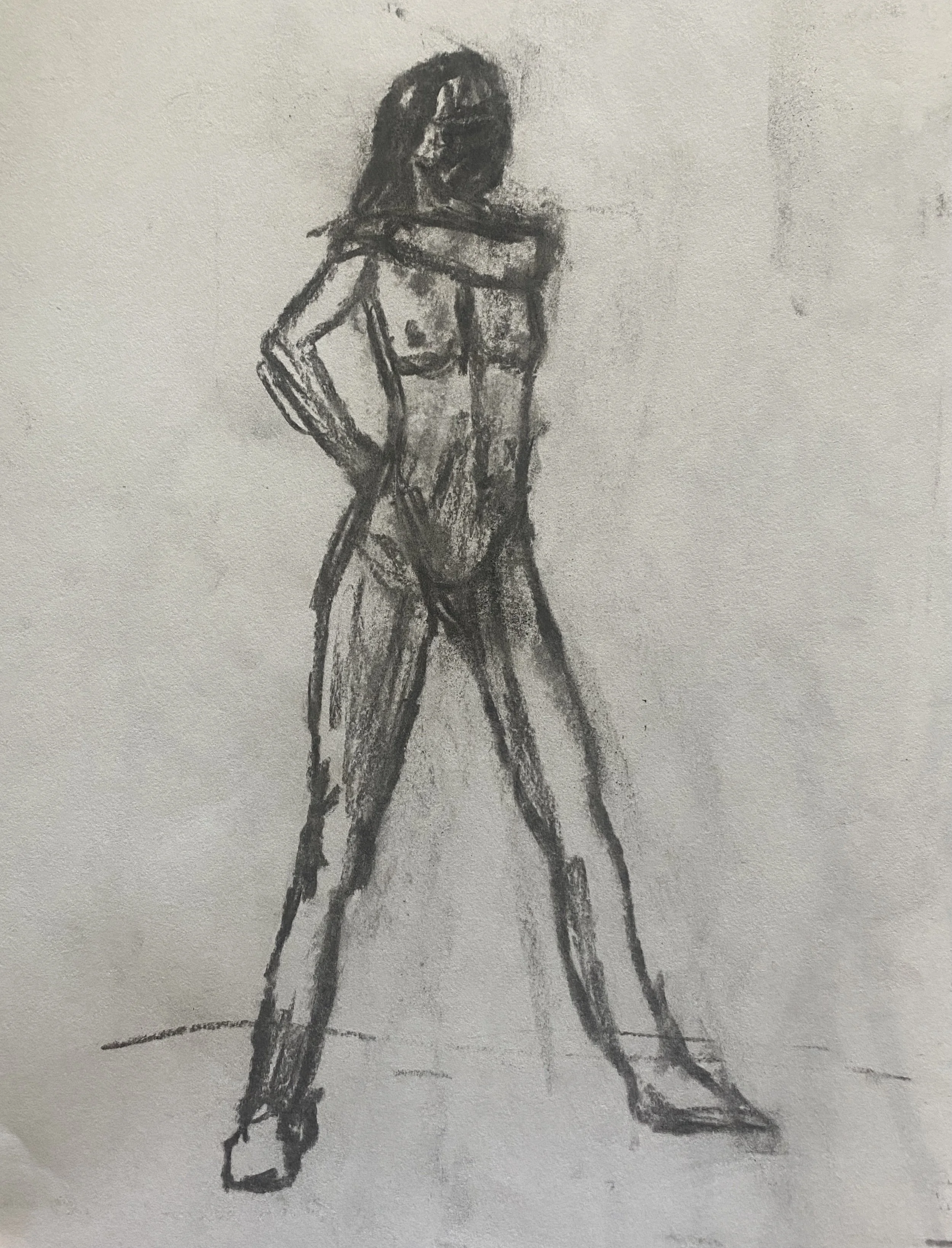 "Skeleton Exercise." 2021. Charcoal on paper.