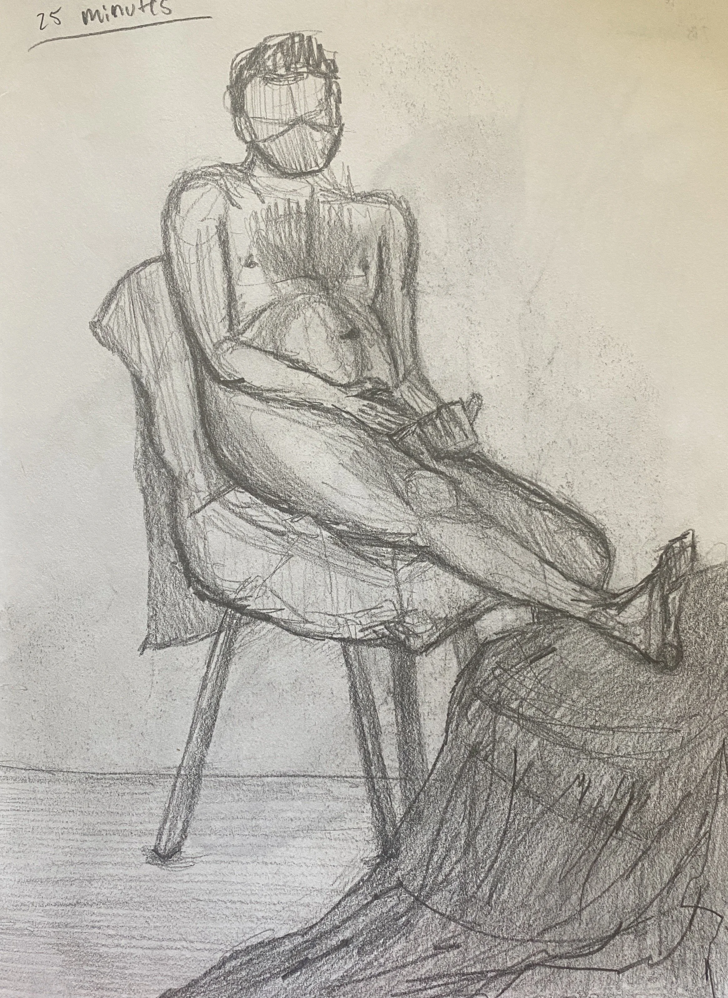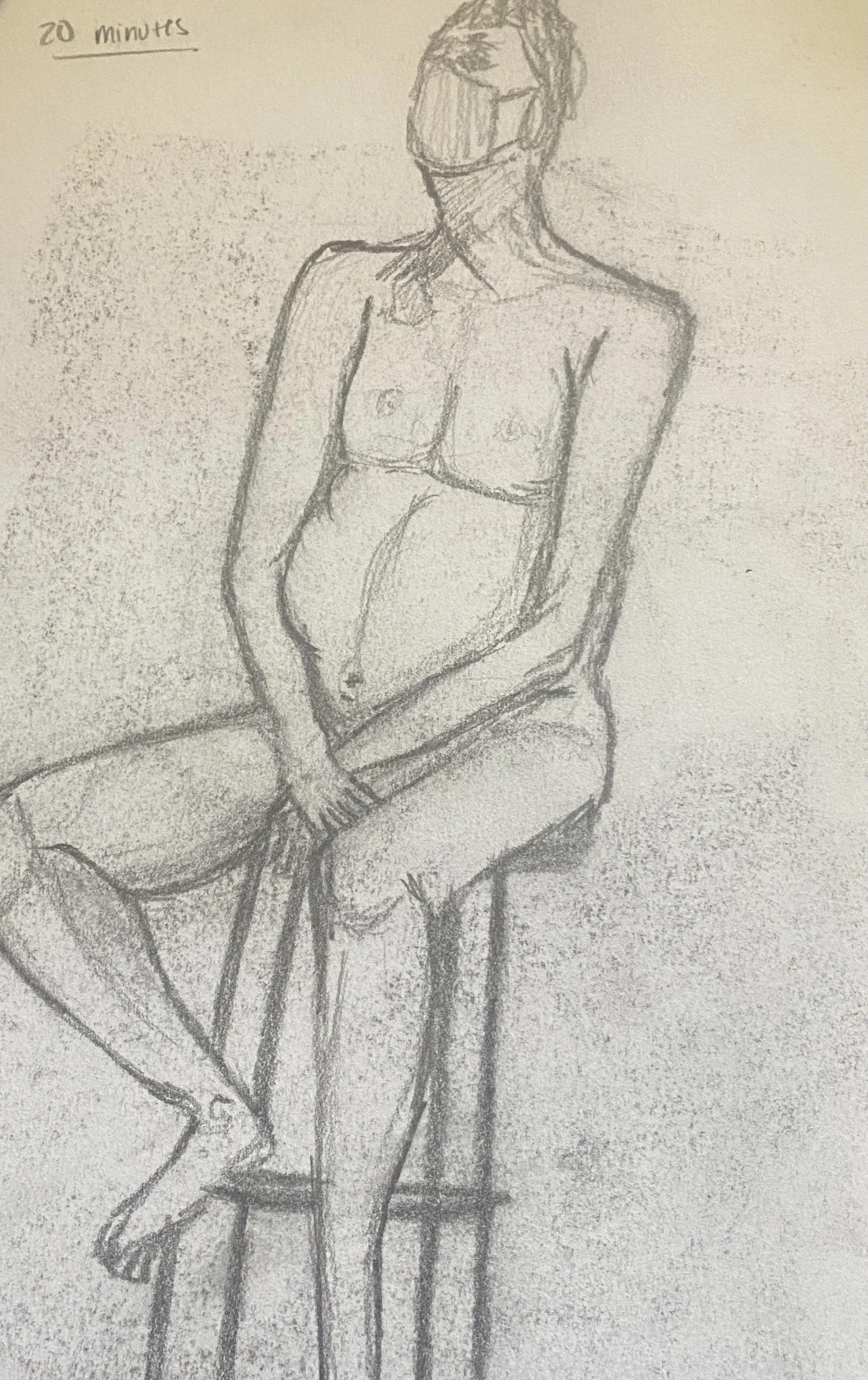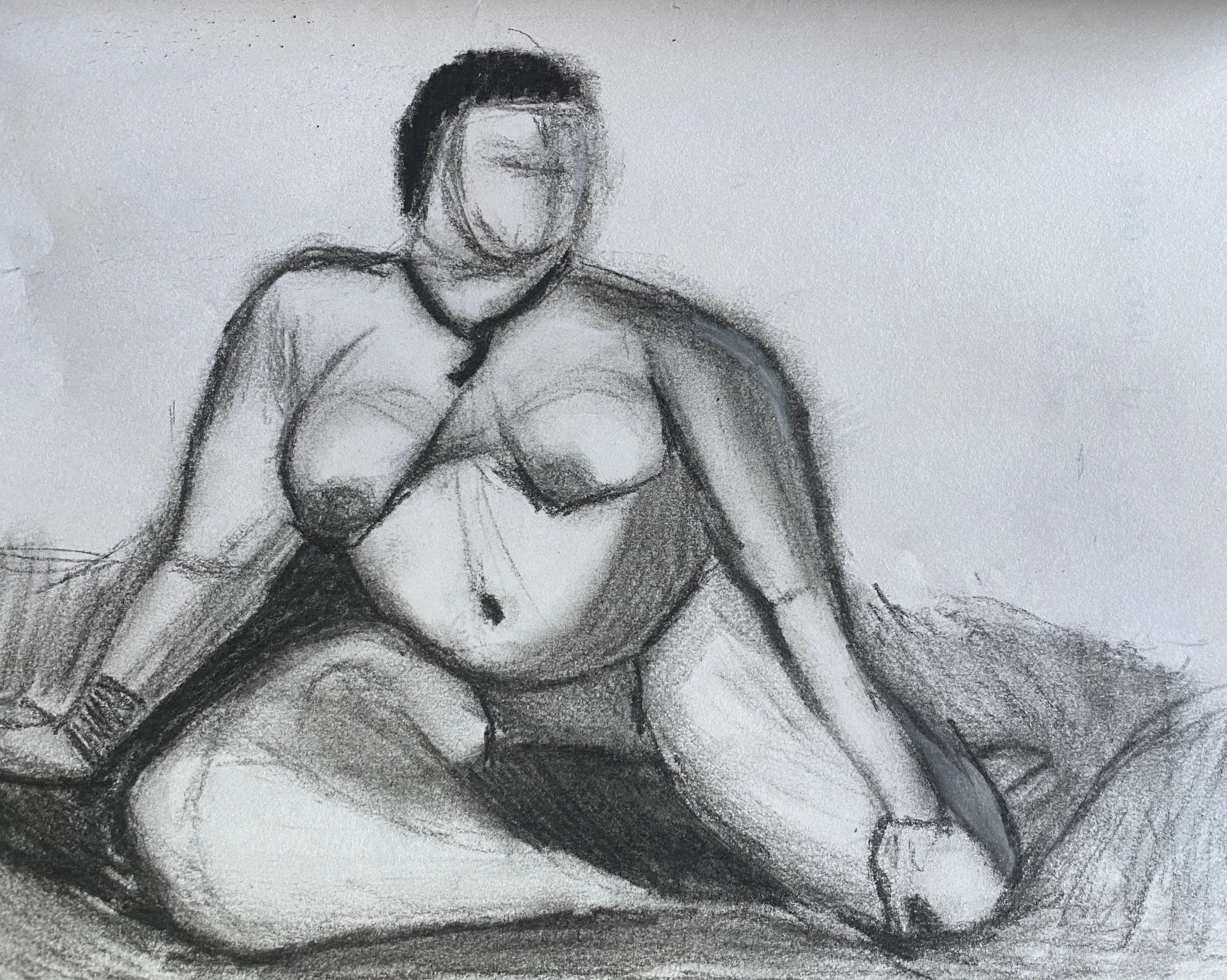 "Skeleton Exercise." 2021. Charcoal on paper.