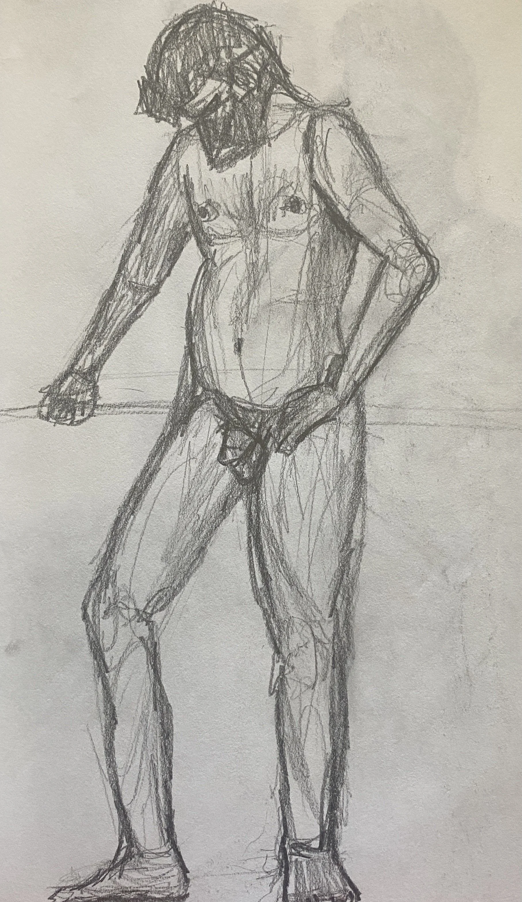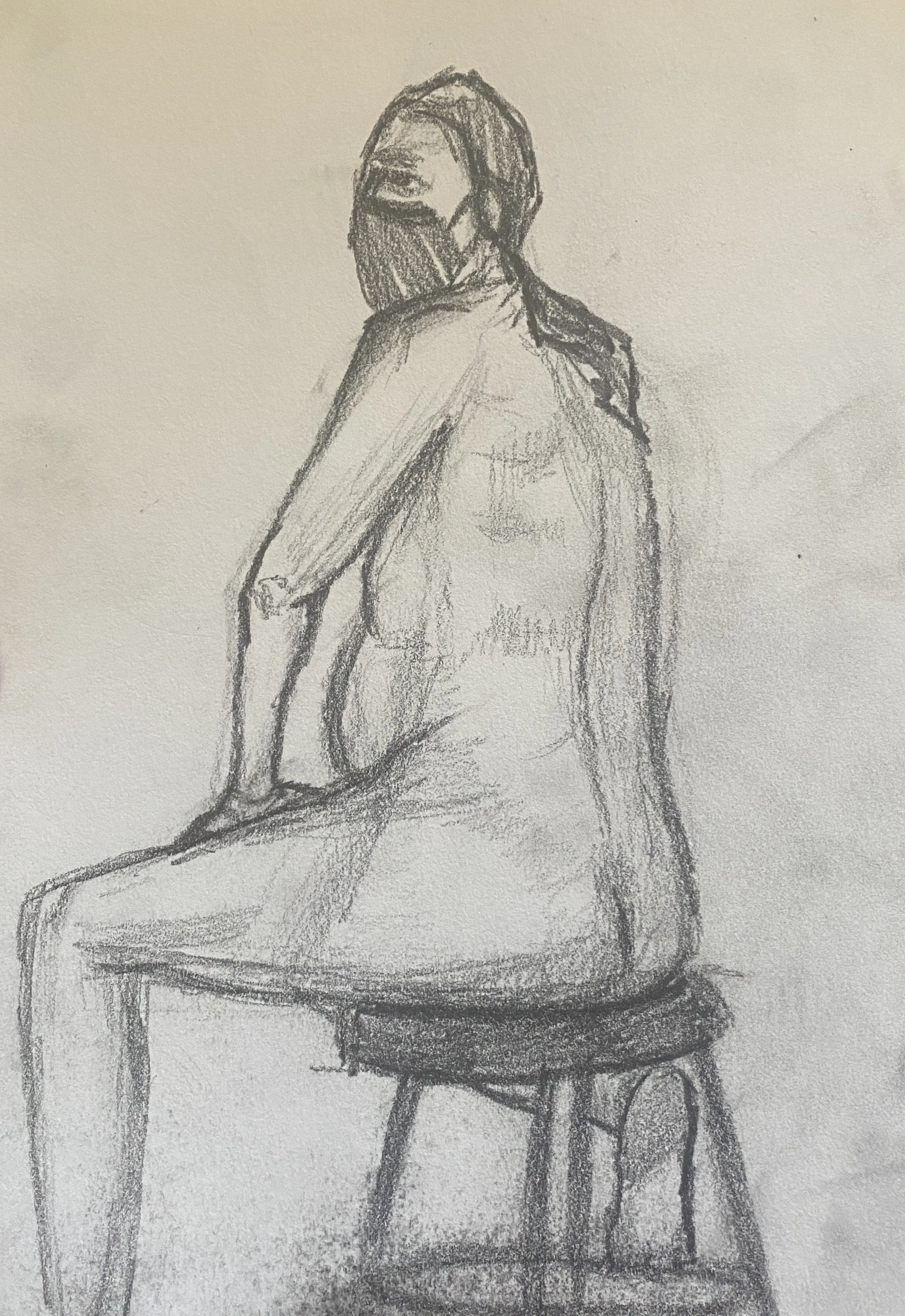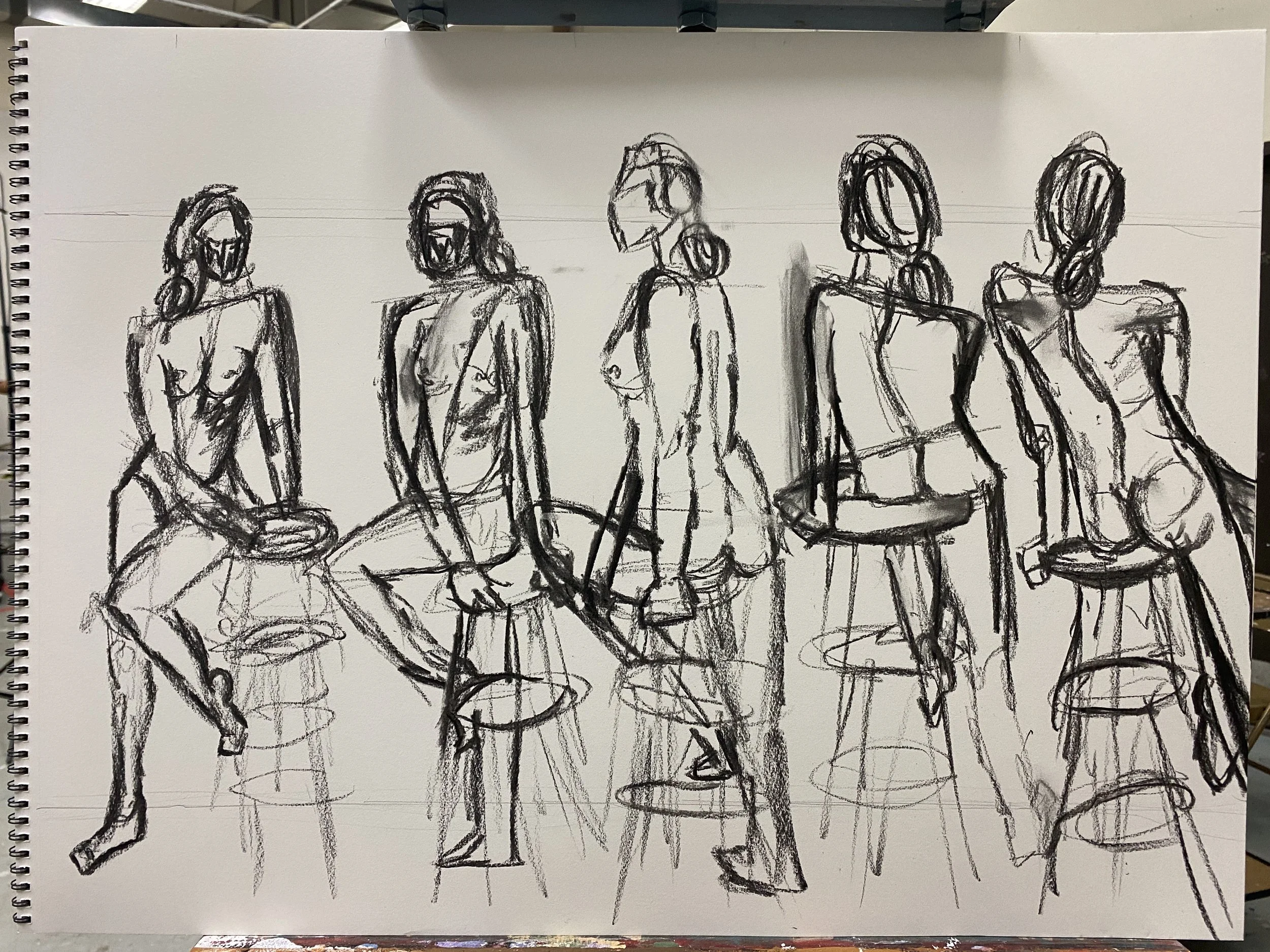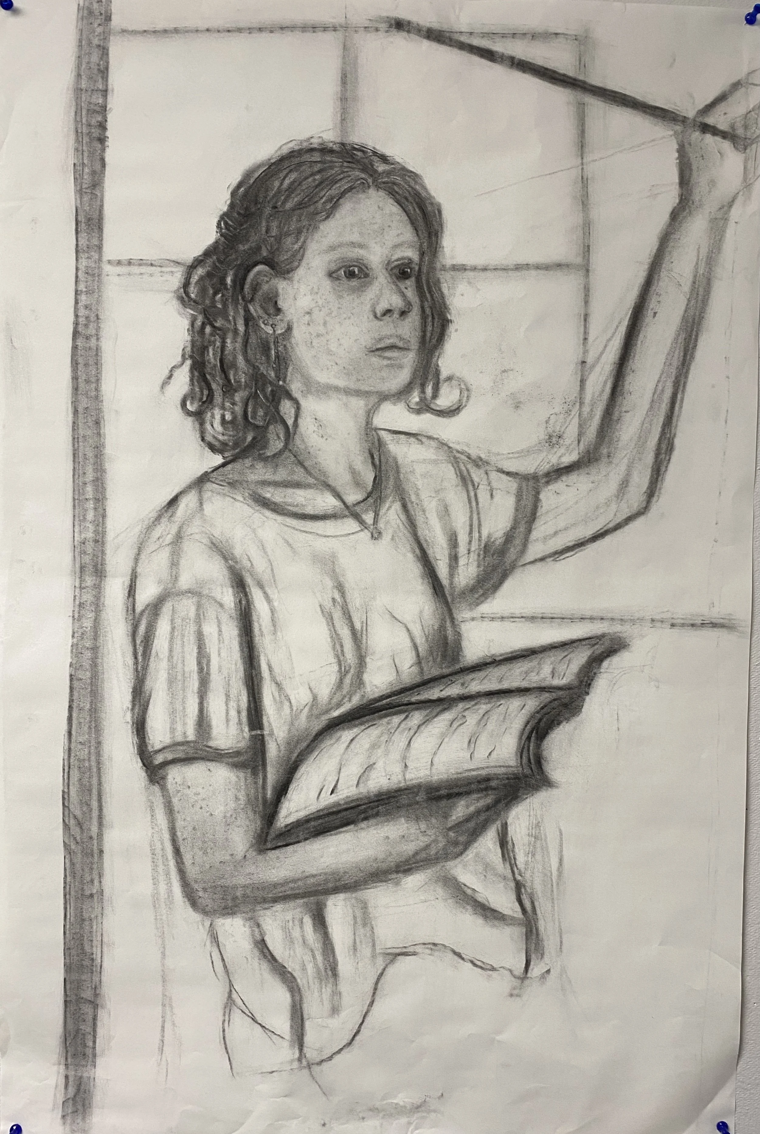 "Skeleton Exercise." 2021. Charcoal on paper.