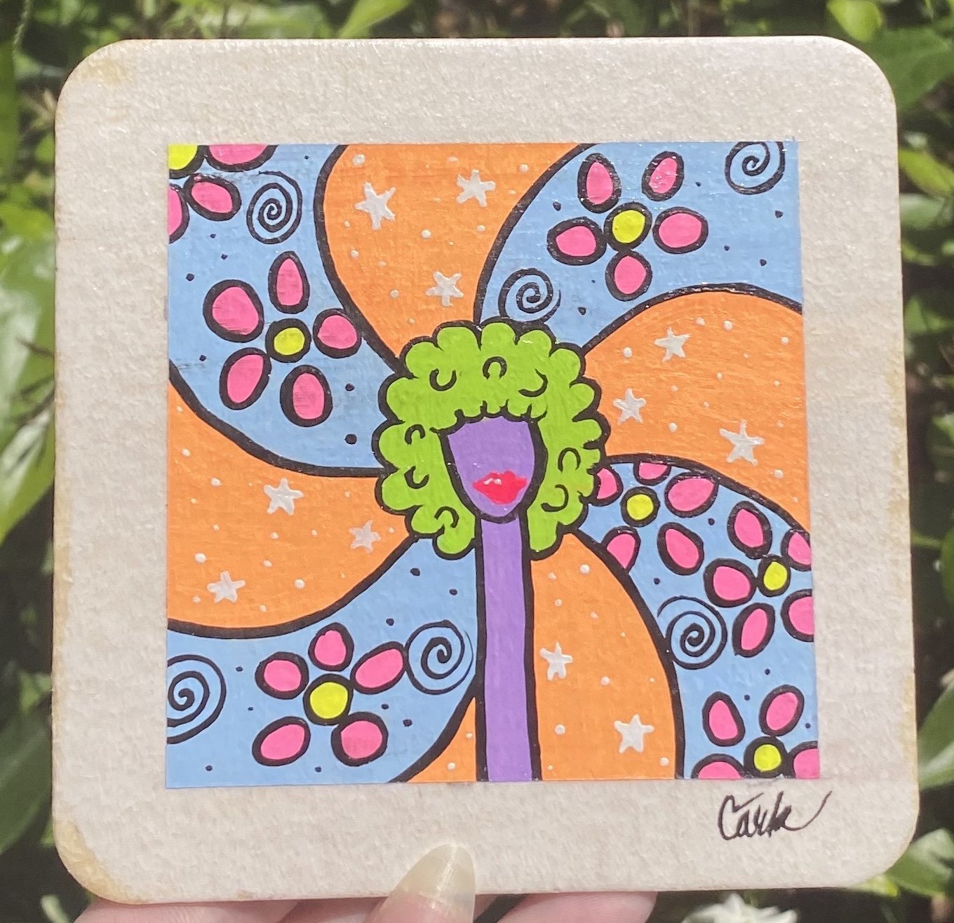 "Let Down Your Hair," 2023. Acrylic paint and modeling paste on canvas. 6"x6"