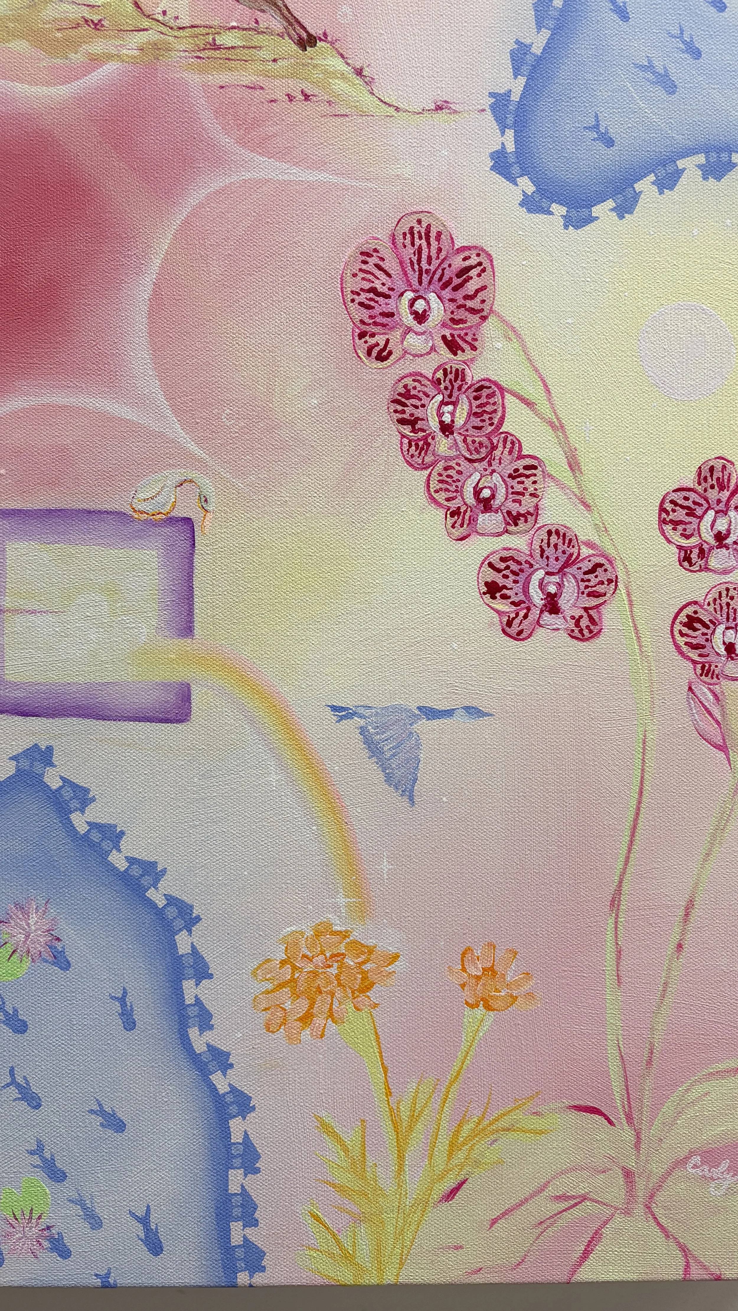 "How Does Heaven Sound at Night?" Detail. 2025. Acrylic paint on canvas. 24"x36"