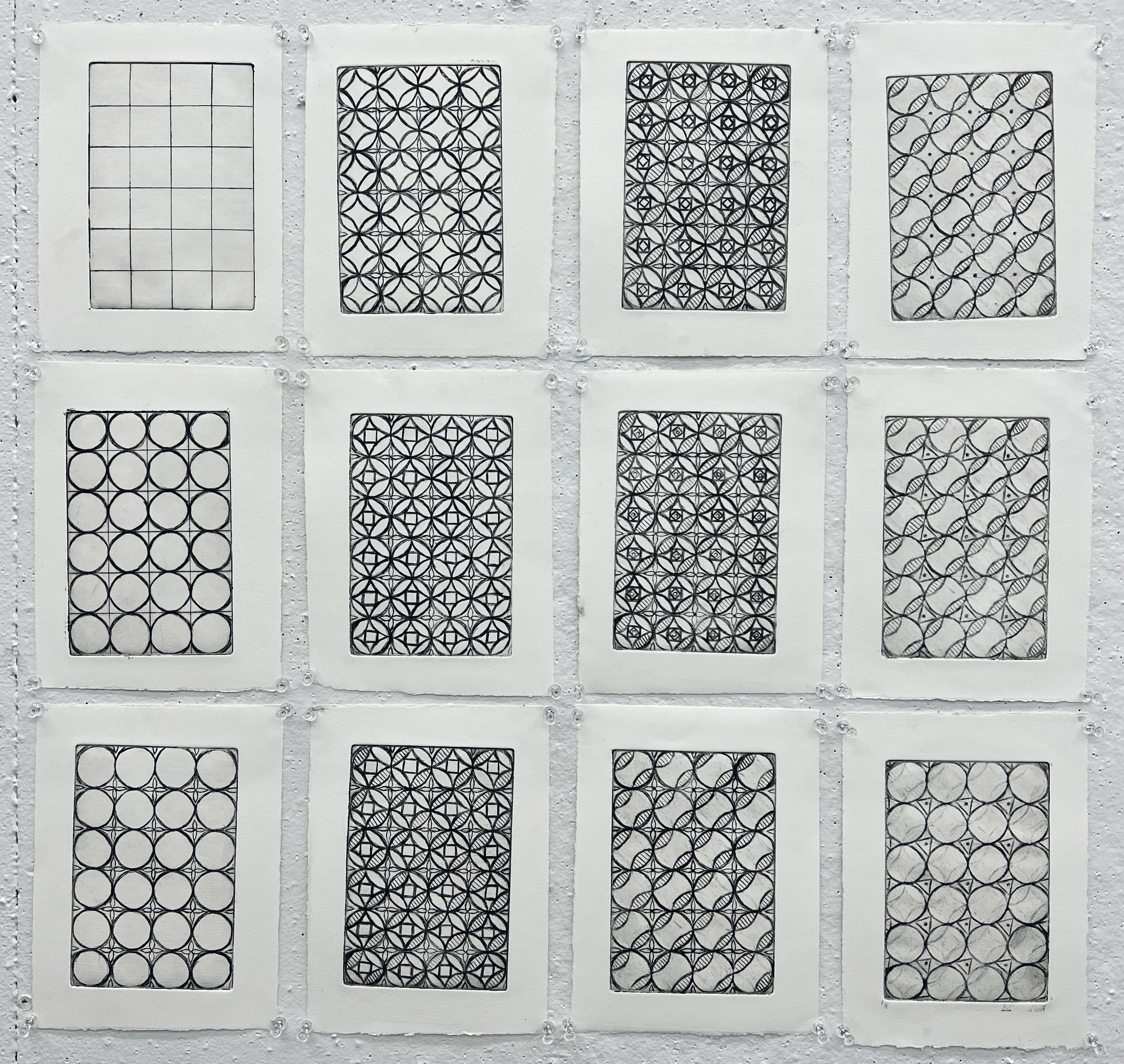 "Untitled Patterns." Drypoint on copper plate, revised 12 times. 6"x8" each.