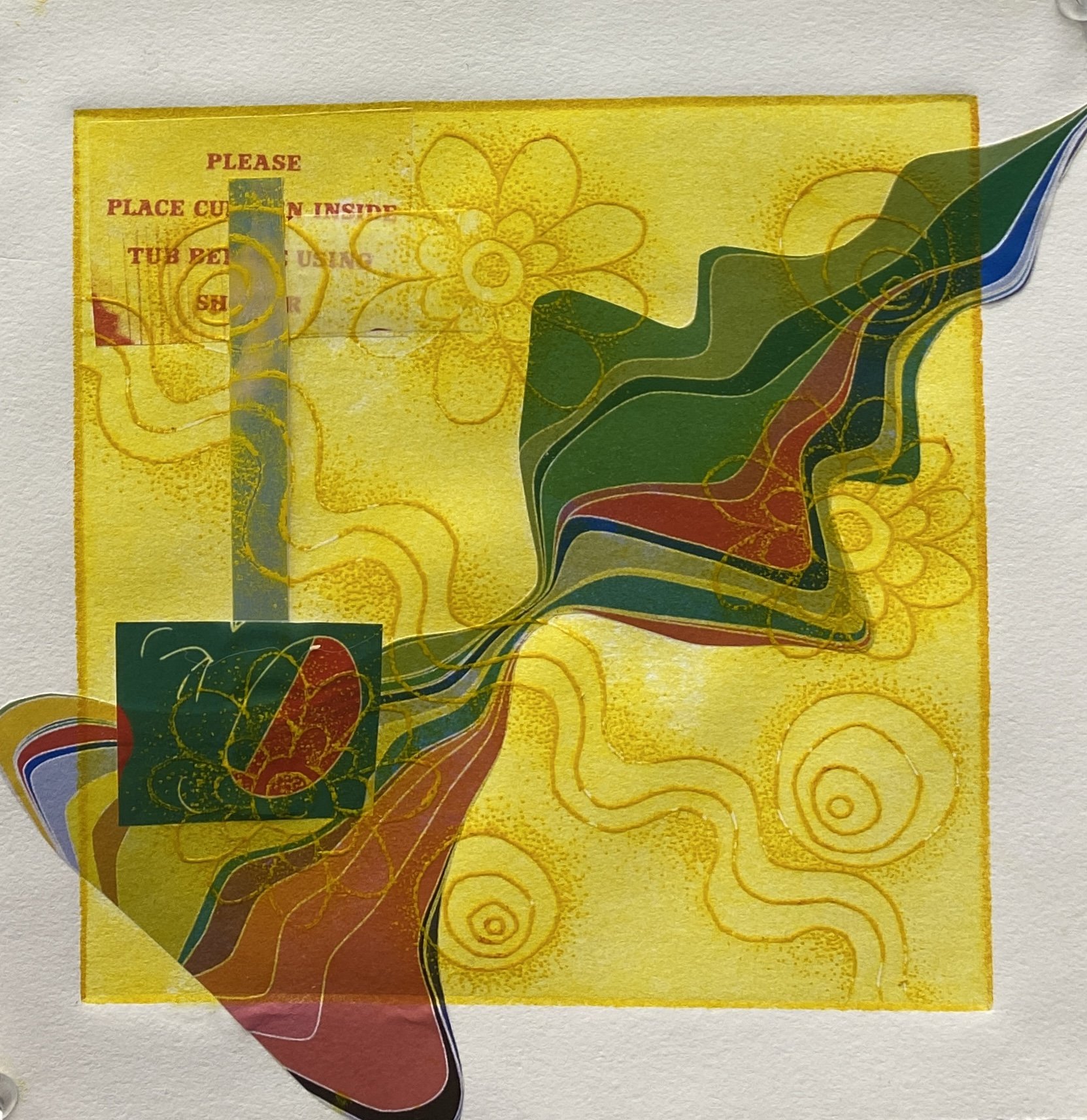 "Banana Breads of Quarantine." 2022. Chine-Collé monoprint. Sintra print, magazine clippings. 8"x8"