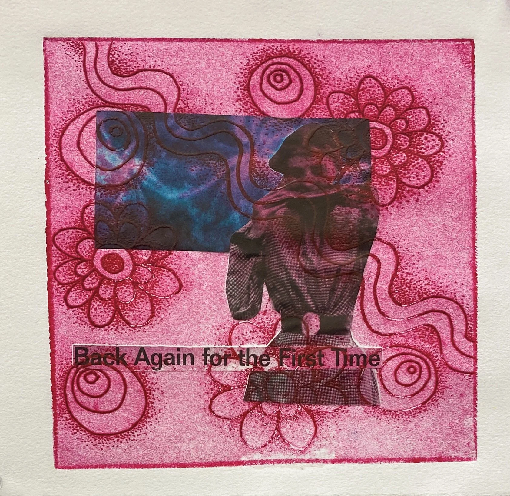 "Back Again For the First Time." 2022. Chine-Collé monoprint. Sintra print, magazine clippings. 8"x8"